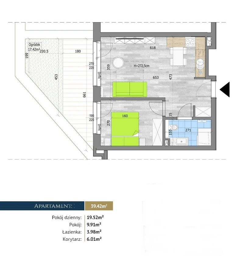 Mit einer Wohnfläche von 41 m² bietet das Apartment ein komfortables Zuhause für Singles oder Paare. Die offene Küche mit Durchreiche schafft eine freundliche und kommunikative Atmosphäre zum Kochen und Verweilen. Das Badezimmer ist funktional ausgestattet.