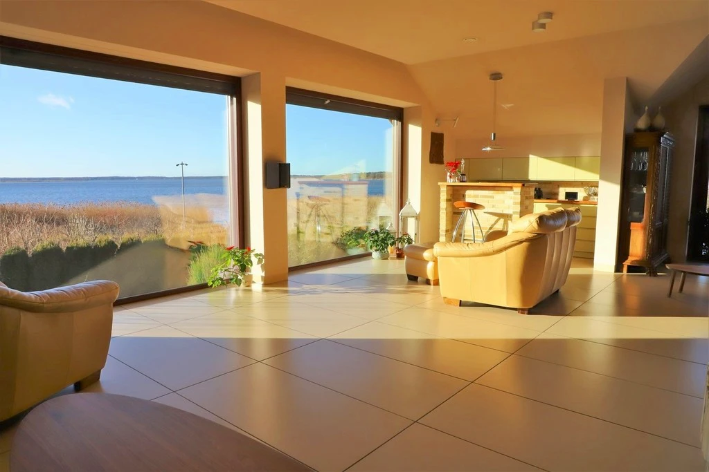 - Großzügiger Wohn- und Essbereich mit Zugang zur 80 m² großen Terrasse mit direktem Seeblick
