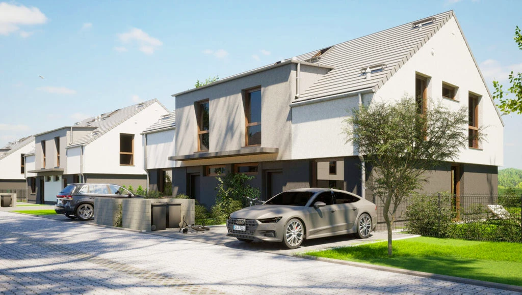 Inmitten eines neu entstehenden Wohngebiets in Dobra, umgeben von Einfamilienhäusern und idyllischer Natur, entstehen moderne Doppelhaushälften, die sowohl durch ihre Architektur als auch durch ihre Lage bestechen. Die unmittelbare Nähe zum Wald bietet hervorragende Möglichkeiten für Spaziergänge, Erholung und ein Leben in Harmonie mit der Natur.