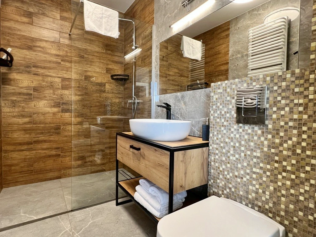 - Badezimmer mit edlem Feinsteinzeug