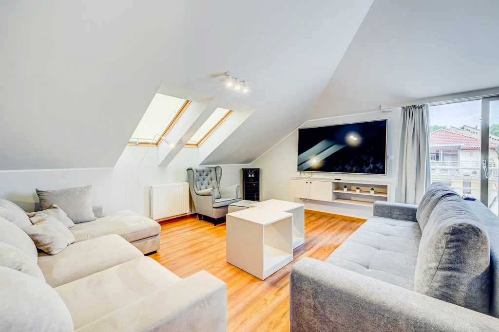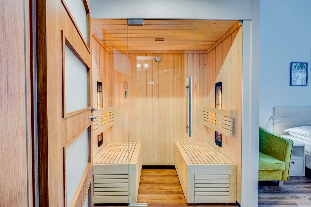 Das Apartment wurde mit viel Liebe zum Detail entworfen und bietet ein Höchstmaß an Komfort. Besonders hervorzuheben sind die Infrarotsauna, die Hydromassage-Badewanne sowie ein eleganter Billardtisch – perfekt für entspannte Abende zu Hause.