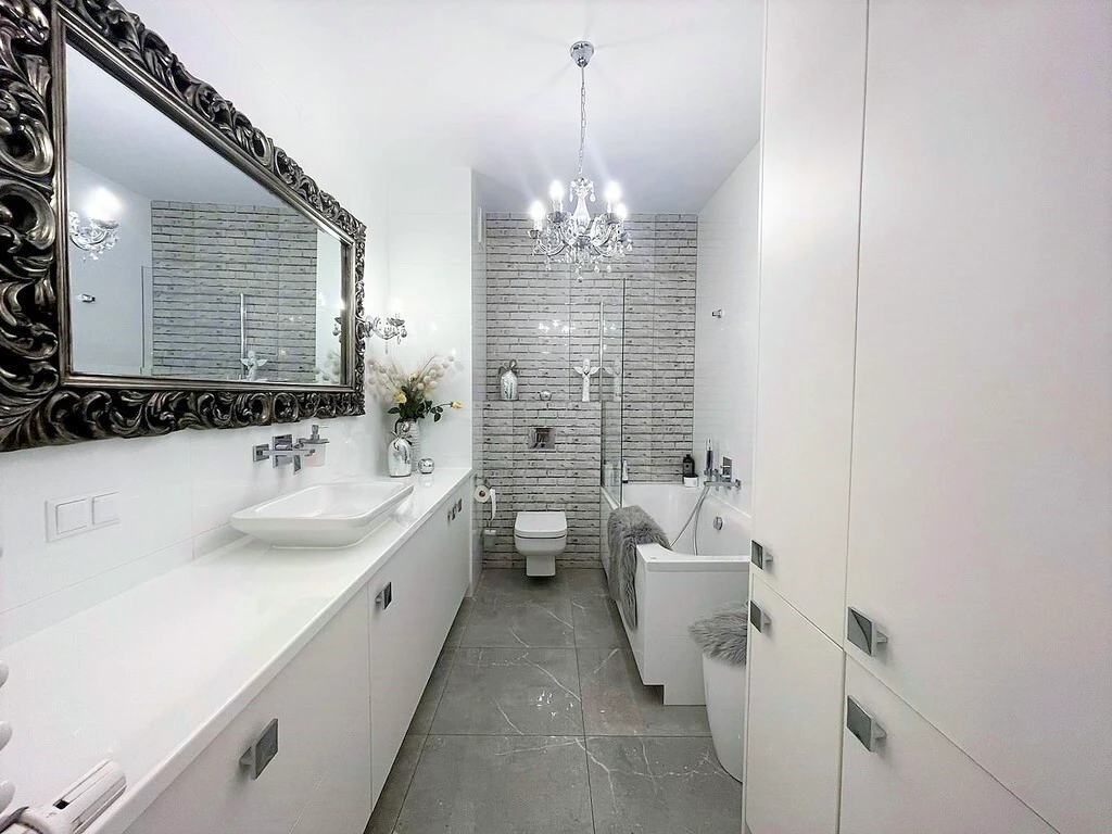 - Pierwsze zdjęcie w naszej galerii zostało lekko zmodyfikowane, aby pokazać, jak nieruchomość mogłaby wyglądać – na przykład po zmianie koloru ścian. Kolejne zdjęcia przedstawiają rzeczywisty stan nieruchomości.