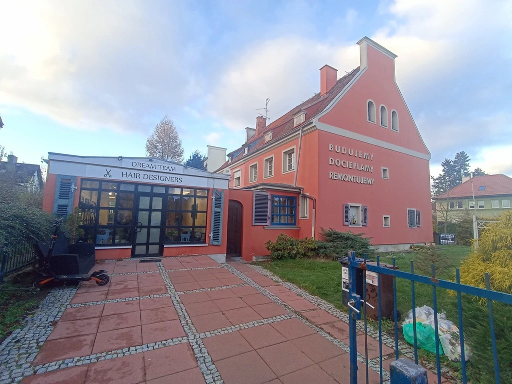 Das Haus befindet sich in einer verkehrsgünstigen, aber gleichzeitig ruhigen Lage – an einer belebten Straße mit sichtbarer Lage und dennoch mit Zugang zu einer ruhigen Nebenstraße, die zum gemütlichen Platz „Ojca Jakuba Wujka“ führt. Die Umgebung bietet hervorragende Infrastruktur: Einkaufsmöglichkeiten, Wochenmarkt Pogodno, Grünanlagen, Spielplätze und Parks sind fußläufig erreichbar.