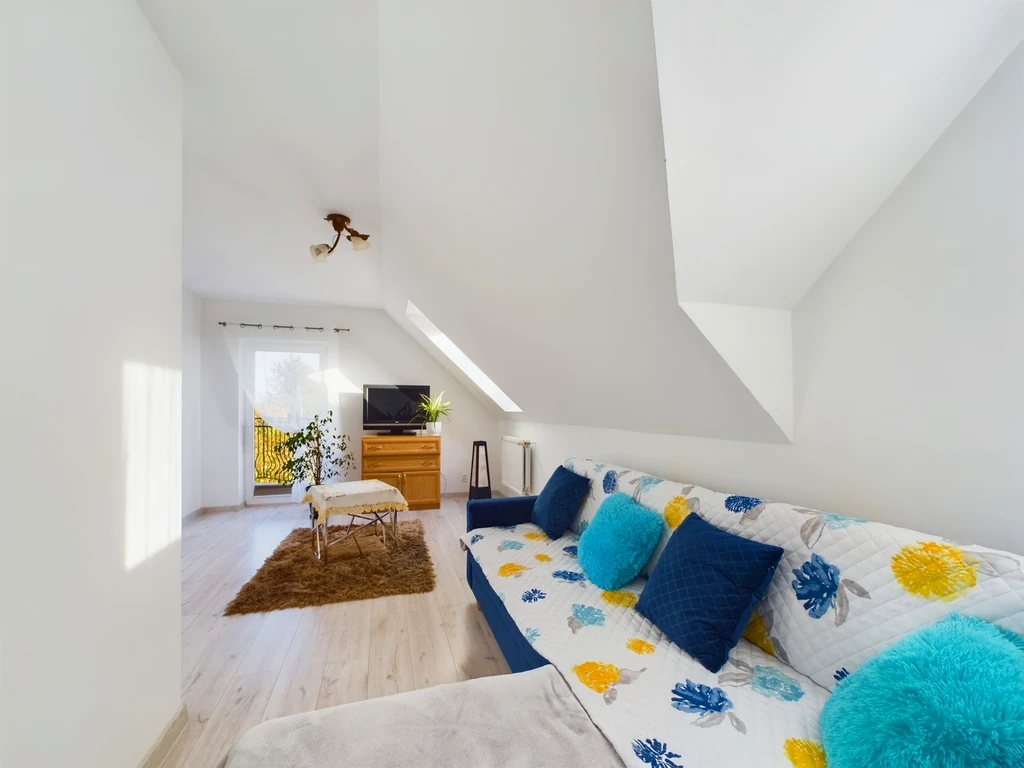 - Pierwsze zdjęcie w naszej galerii zostało lekko zmodyfikowane, aby pokazać, jak nieruchomość mogłaby wyglądać – na przykład po zmianie koloru ścian. Kolejne zdjęcia przedstawiają rzeczywisty stan nieruchomości.