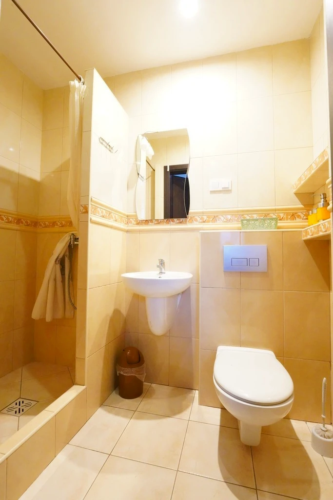 - Pierwsze zdjęcie w naszej galerii zostało lekko zmodyfikowane, aby pokazać, jak nieruchomość mogłaby wyglądać – na przykład po zmianie koloru ścian. Kolejne zdjęcia przedstawiają rzeczywisty stan nieruchomości.