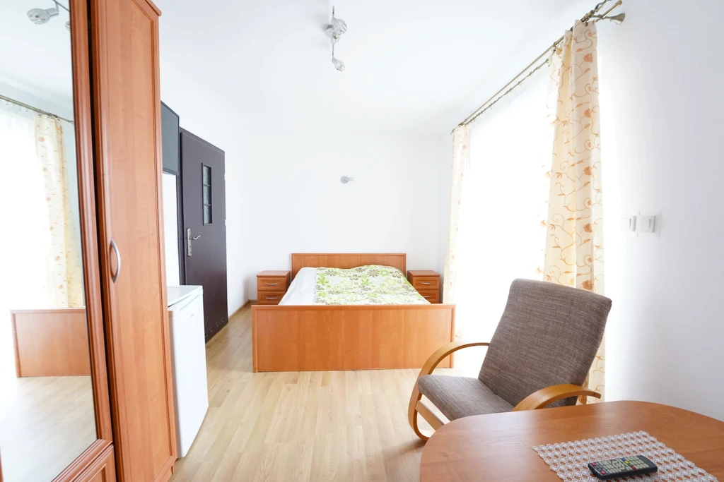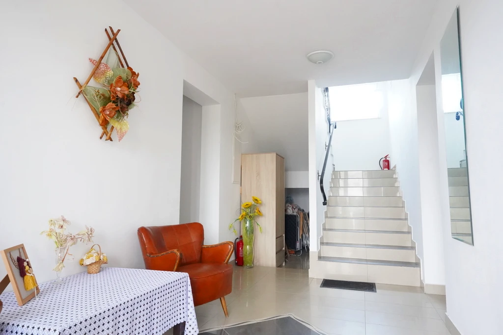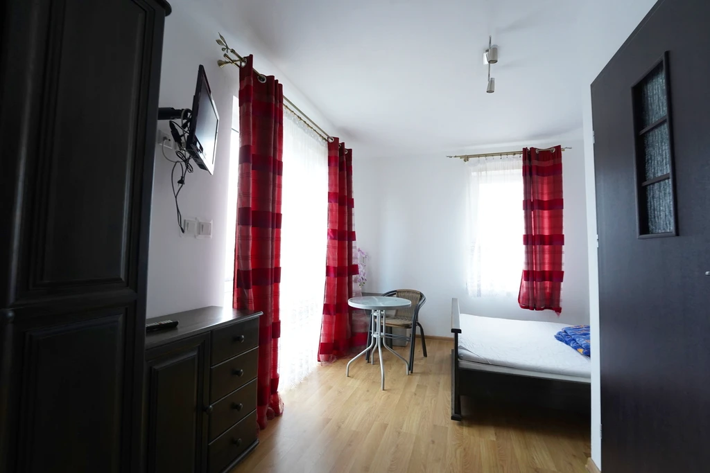 Das Gästehaus besteht aus insgesamt 22 komplett ausgestatteten Zimmern – jedes mit eigenem Bad. Auf den Etagen stehen geräumige Gemeinschaftsküchen zur Verfügung, die über alle notwendigen Haushaltsgeräte verfügen. Im Erdgeschoss befinden sich eine Rezeption sowie ein Heizungsraum.