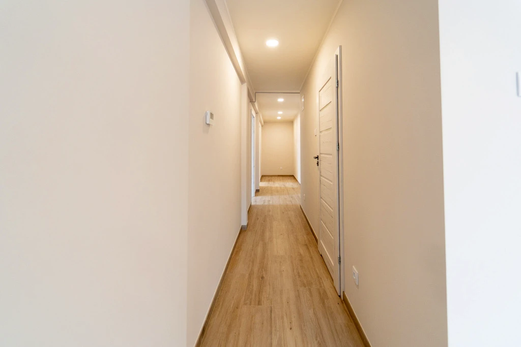 Der geräumige Flur bietet Platz für einen großen Kleiderschrank und zusätzlichen Stauraum.