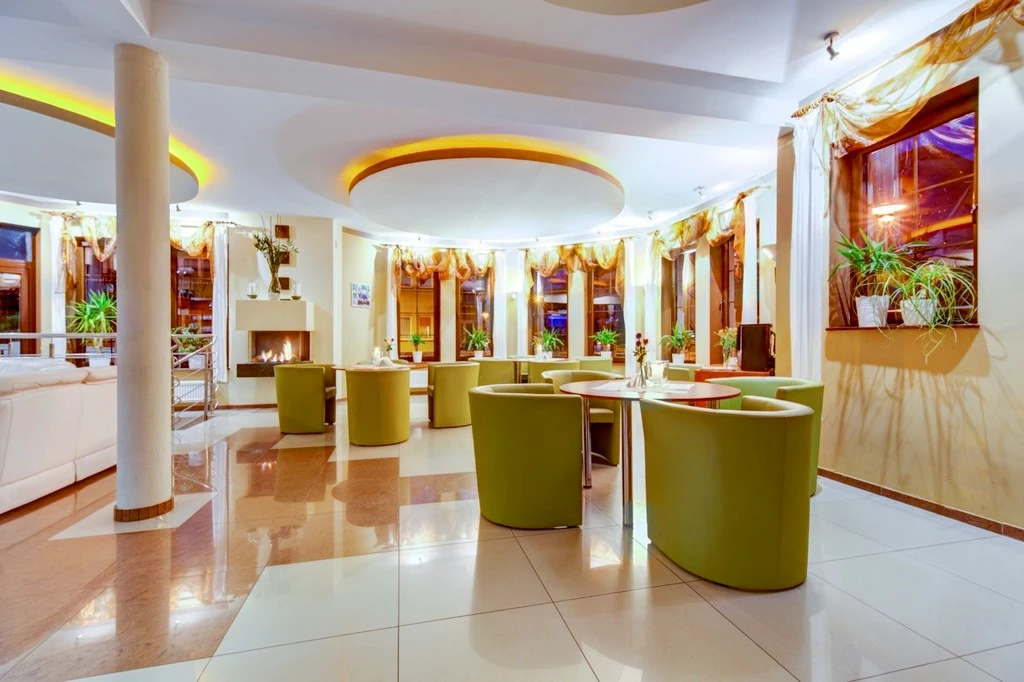 - Kompletter Gastronomiebereich mit Restaurant, Rezeption, Bar, Café sowie funktionaler Küchen- und Wirtschaftseinheit