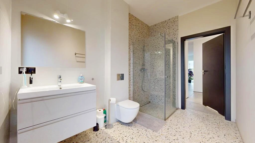- Hauptschlafzimmer mit begehbarem Kleiderschrank und eigenem Badezimmer mit Badewanne, Dusche und WC – Ihre private Wellness-Oase