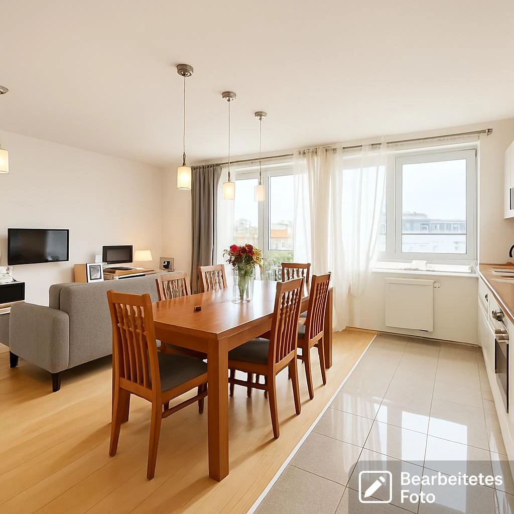 Die Wohnung befindet sich in einem gepflegten Zustand, lediglich kleinere Renovierungsarbeiten wie das Abschleifen des Parkettbodens wären empfehlenswert. Die Räume sind lichtdurchflutet und großzügig geschnitten – ideal für Paare oder Familien mit Kindern.