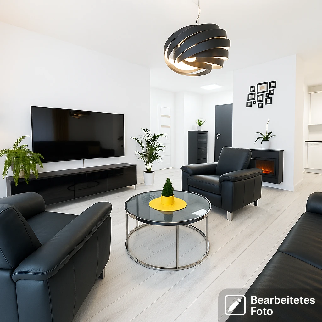 - Extras: Stilvoller, moderner Elektrokamin sorgt für eine gemütliche Atmosphäre und zusätzliche Wärme