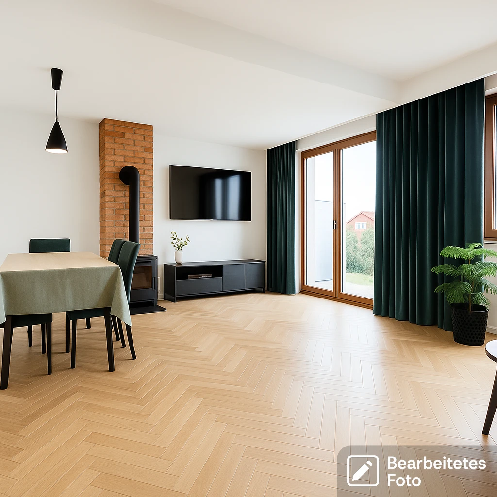 - Großzügiger, heller Wohnbereich mit Zugang zum Garten