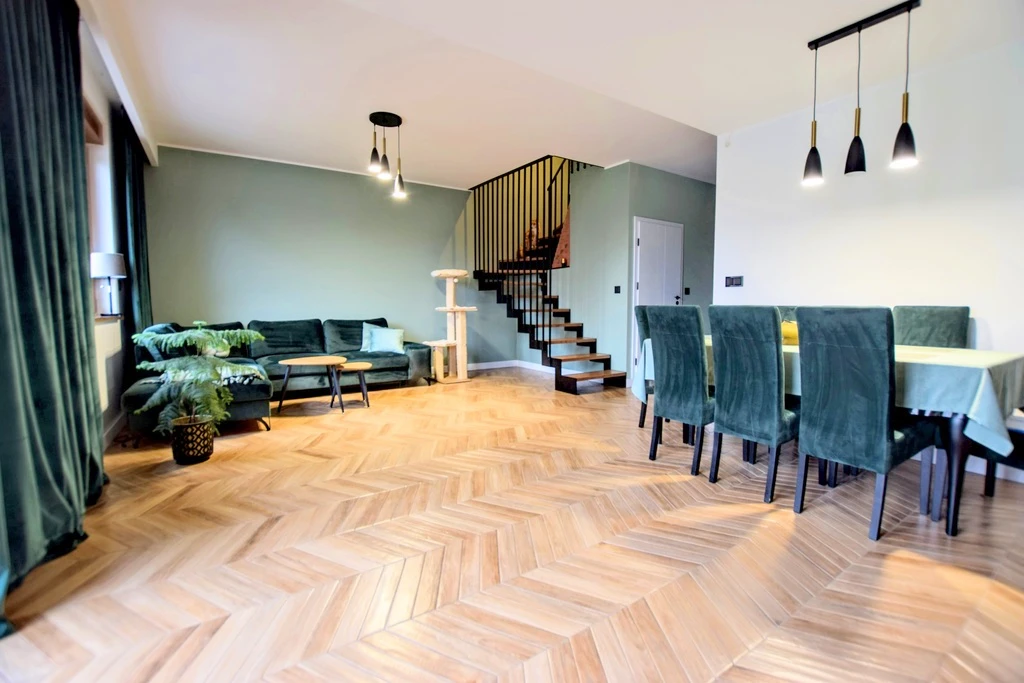 Willkommen in Ihrem neuen Zuhause! Diese attraktive Doppelhaushälfte befindet sich in einem geschlossenen Wohngebiet in Mierzyn und wurde 2021 erbaut. Sie verbindet modernes Wohnen mit hoher Lebensqualität – ideal für Familien mit Kindern.