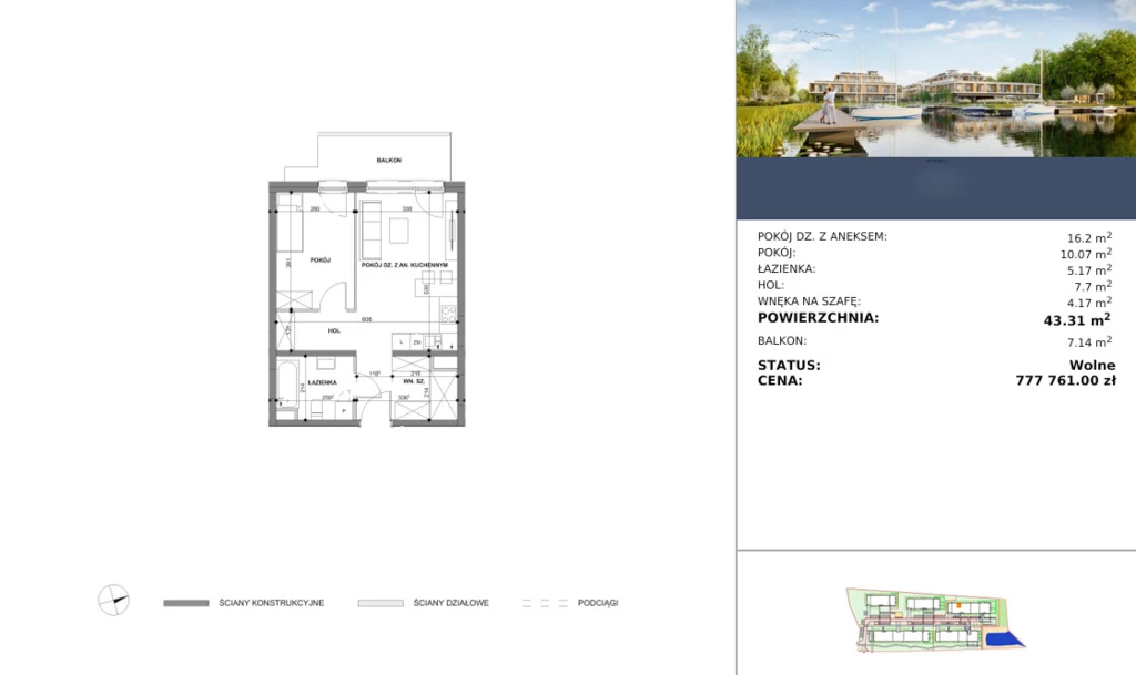 Wir präsentieren Ihnen eine außergewöhnliche Gelegenheit, Eigentümer einer modernen Wohnung in einer einzigartigen Lage direkt am Seeufer zu werden – in einem neuen, hochwertigen Bauvorhaben über dem Dąbie-See in Stettin.