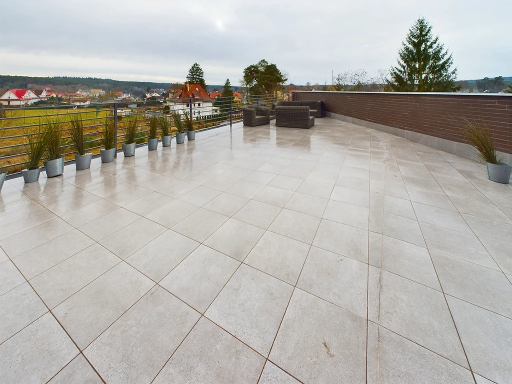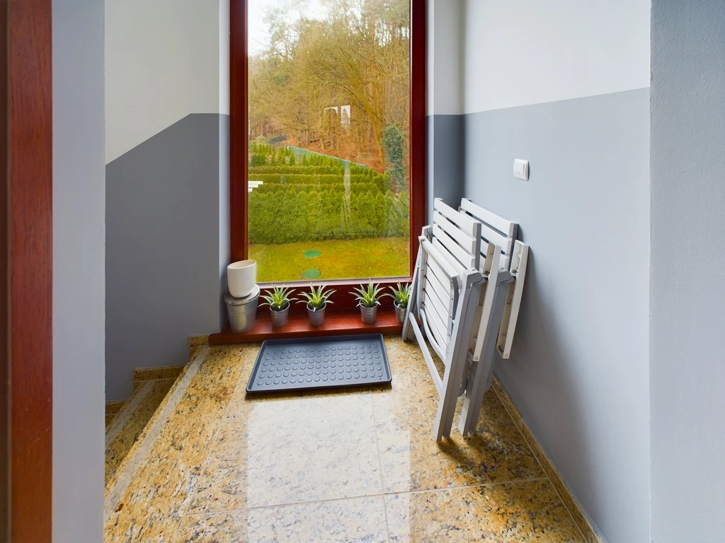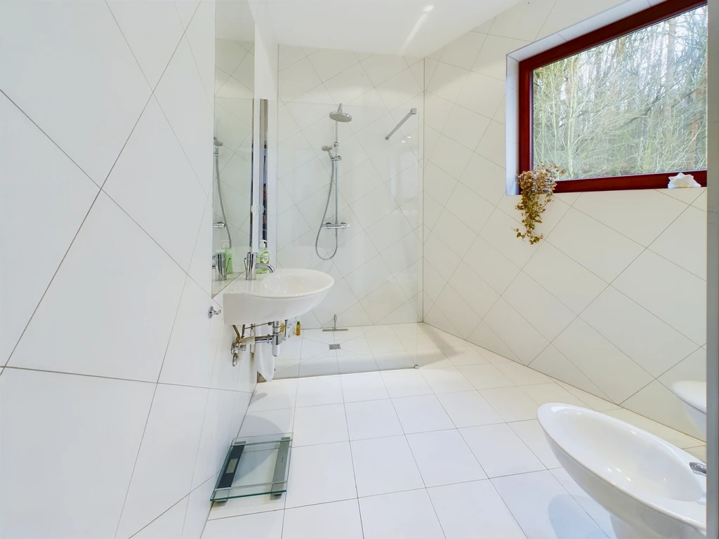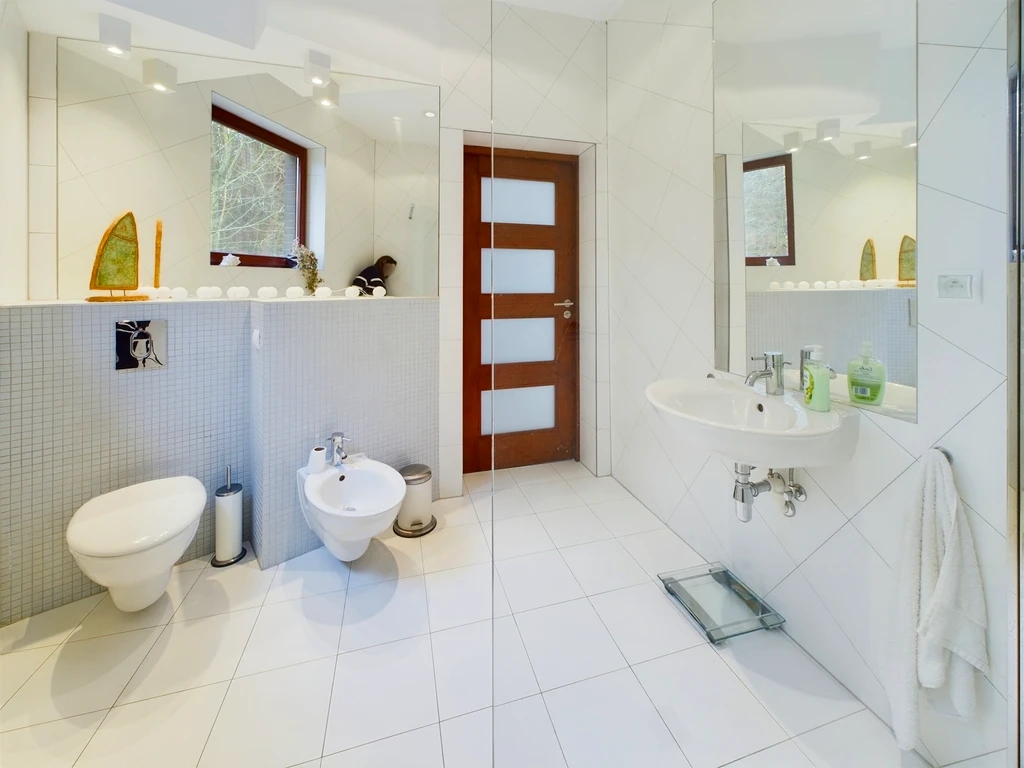 Die eindrucksvolle Terrasse misst ca. 75 m² und lädt mit ihrem Whirlpool zum Entspannen ein – ob beim Frühstück in der Morgensonne oder bei einem Glas Wein am Abend. Von hier aus gelangen Sie durch einen privaten Zugang direkt in den angrenzenden Wald – ein seltener Luxus für Naturliebhaber.