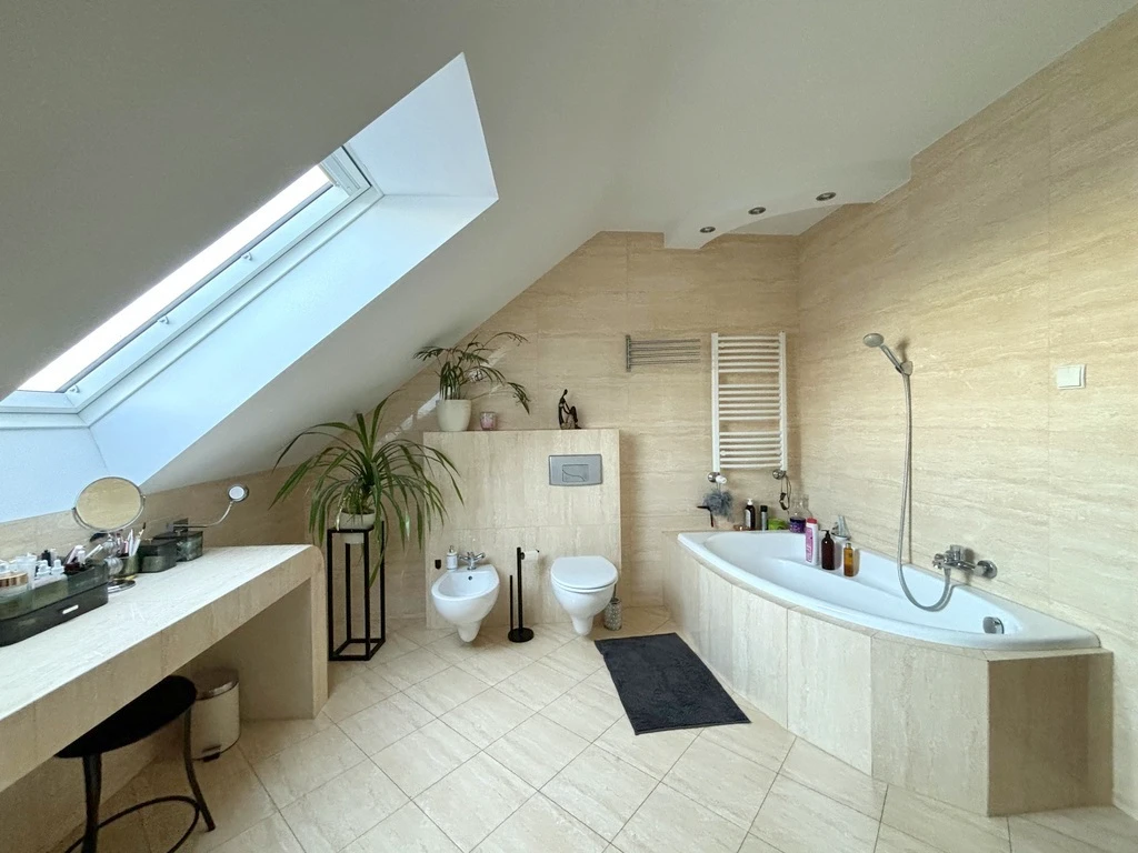 - Badezimmer mit Fenster, Badewanne, Dusche, Bidet und WC (3,5 m²)