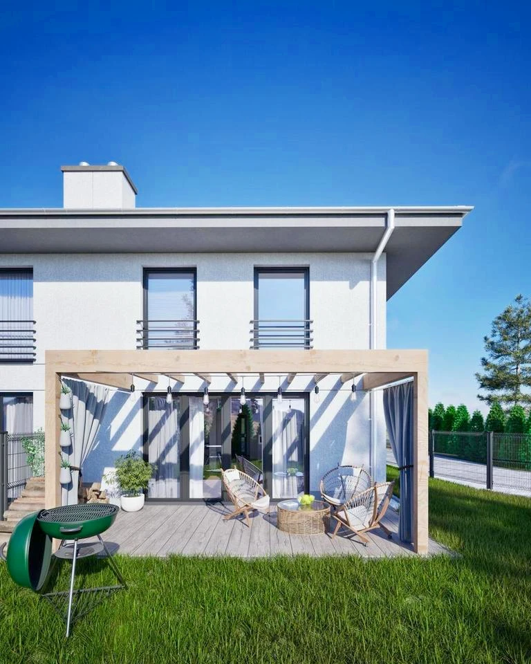 Dieses moderne und hochwertig ausgestattete Doppelhaus befindet sich im beliebten Stadtteil Bezrzecze. Das Haus bietet eine großzügige Wohnfläche von 128 m² auf einem 450 m² großen, rechteckigen Grundstück.