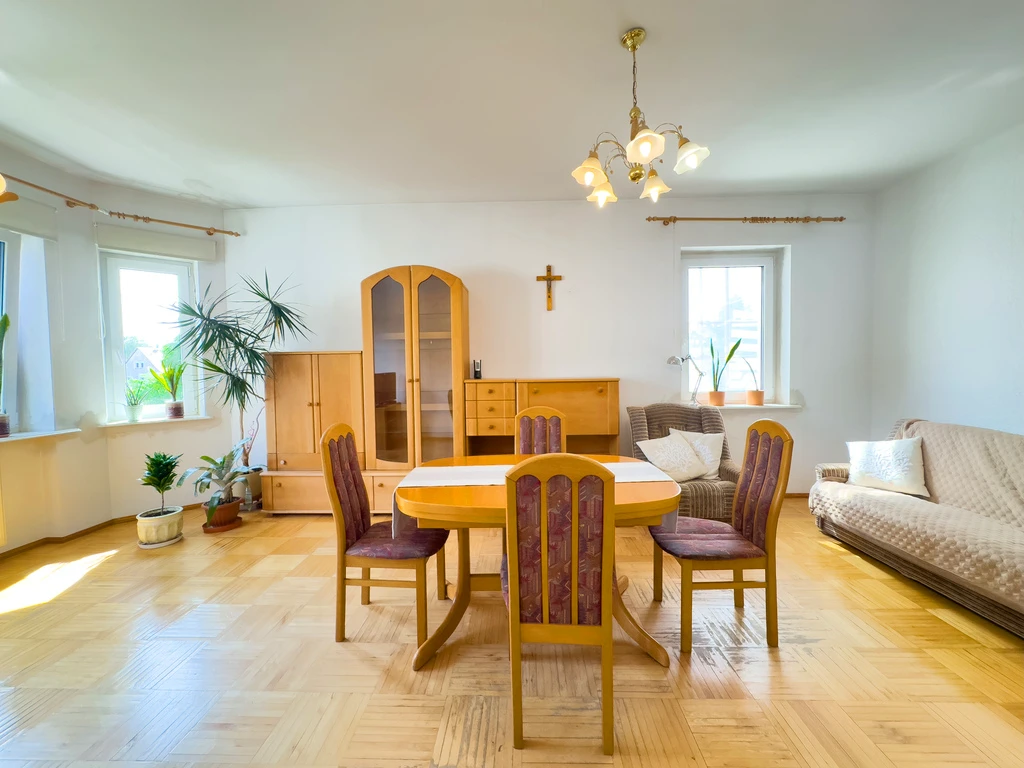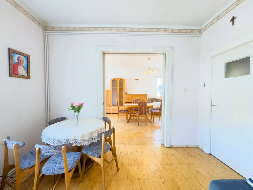 Wir präsentieren Ihnen eine großzügig geschnittene, helle Wohnung mit einer Fläche von 97,82 m², gelegen im ersten Stock eines charmanten Dreifamilienhauses mit Grundbucheintrag. Diese wunderschöne Immobilie überzeugt durch ihre durchdachte Raumaufteilung, die Südostausrichtung sorgt für eine hervorragende Tageslichtversorgung in allen Räumen.