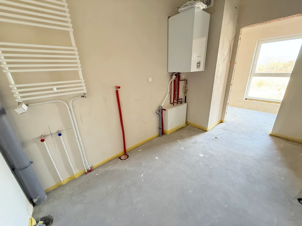- Heizung: Zweikreis-Gastherme mit eingebautem Warmwasserspeicher (Marke Saunier Duval)