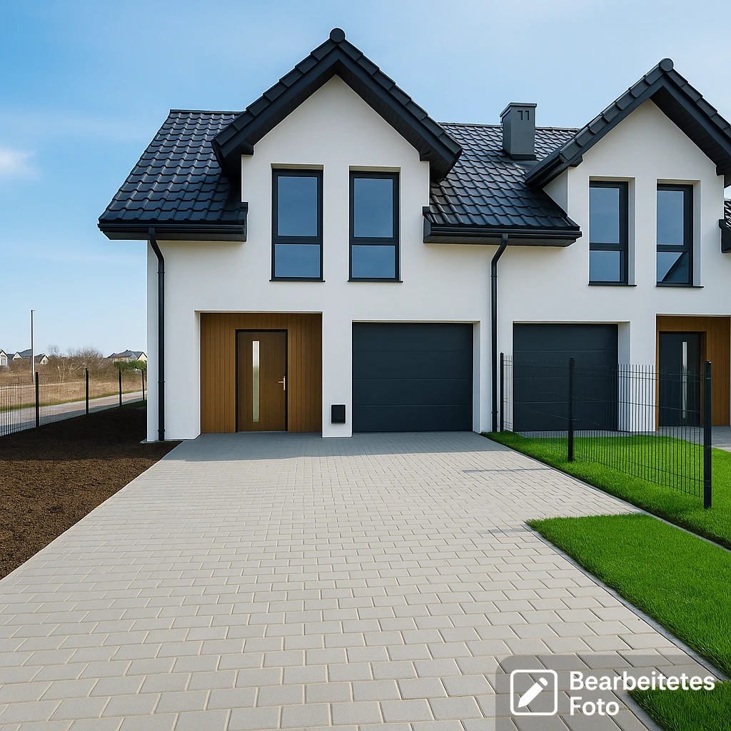 Das Haus steht auf einem ca. 382 m² großen, vollständig umzäunten Grundstück mit idealer Ausrichtung: Die Auffahrt und Garage zeigen nach Norden, der sonnige Garten liegt im Süden – perfekt für entspannte Nachmittage im Grünen. Die Einfahrt sowie der Weg zum Haupteingang sind stilvoll mit Betonpflaster gestaltet. Das Grundstück ist eingeebnet und bereit zur individuellen Gestaltung.