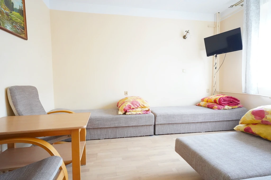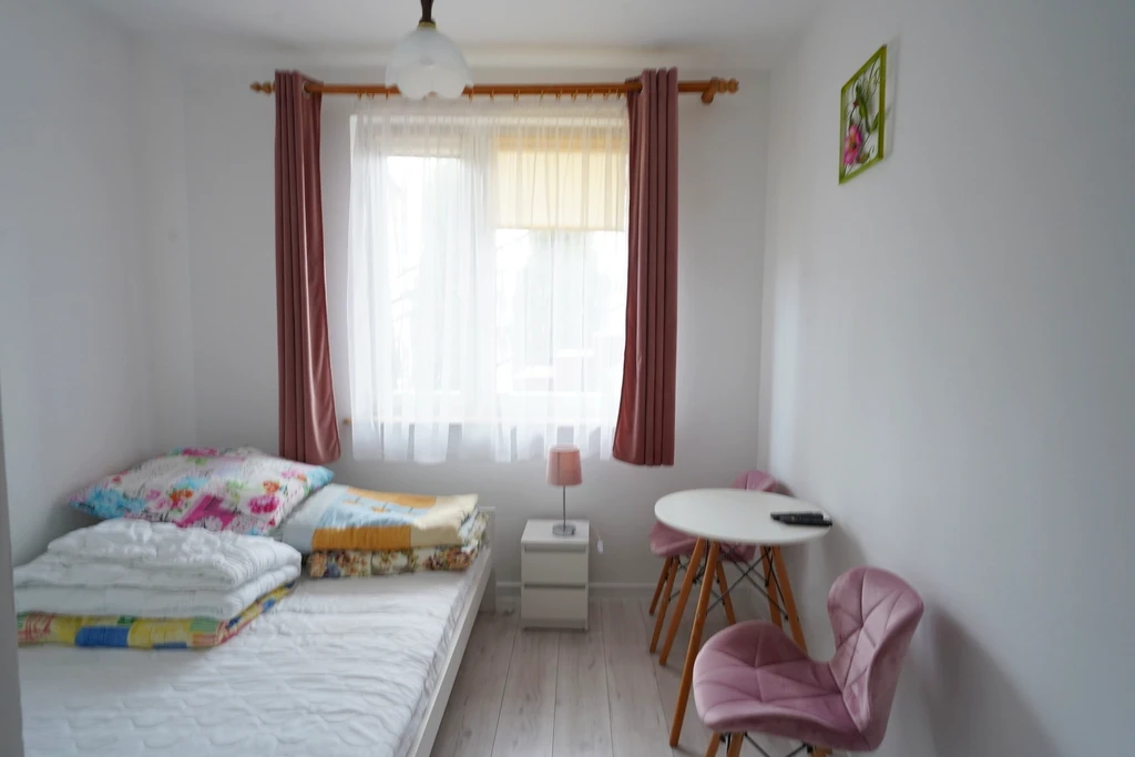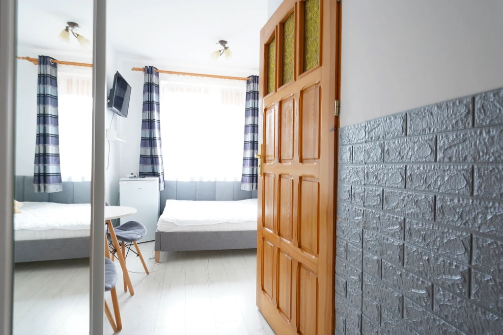 Die Zimmer sind als Zwei-, Drei- und Vierbettzimmer ausgestattet – ideal für Familien, Gruppen und Paare. Die Ausstattung umfasst u.a. Fernseher, Internet, moderne Bäder mit Dusche und Heizkörper, sowie Zugang zu Küche und Haushaltsgeräten.