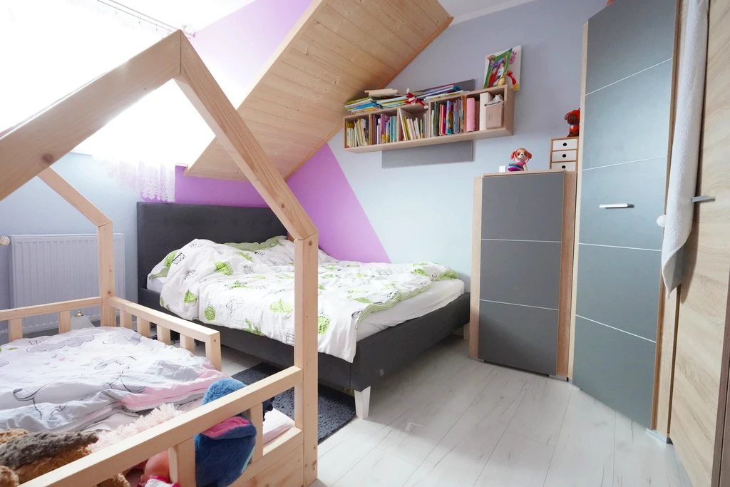 - Pierwsze zdjęcie w naszej galerii zostało lekko zmodyfikowane, aby pokazać, jak nieruchomość mogłaby wyglądać – na przykład po zmianie koloru ścian. Kolejne zdjęcia przedstawiają rzeczywisty stan nieruchomości.