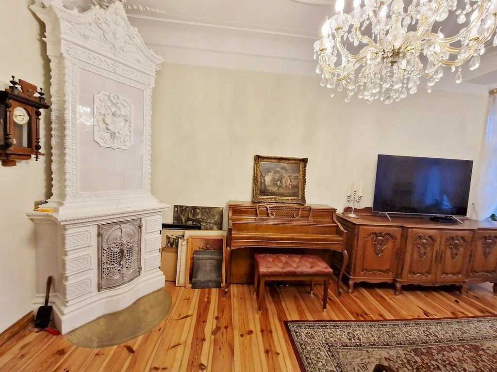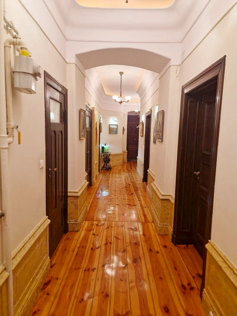 Die Wohnung befindet sich im dritten Obergeschoss und wurde vollständig kernsaniert. Sämtliche Installationen – Elektrik, Wasser- und Abwassersysteme sowie Heizungsanlagen – wurden erneuert. Neue Fenster sorgen für Energieeffizienz und Schallschutz. Originalelemente wie Türen, Fischgrätparkett und reich verzierte Stuckdecken wurden liebevoll restauriert oder detailgetreu nachgebildet – ein Projekt, das unter künstlerischer Leitung mit höchster Sorgfalt umgesetzt wurde.