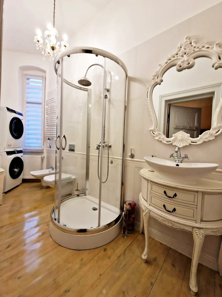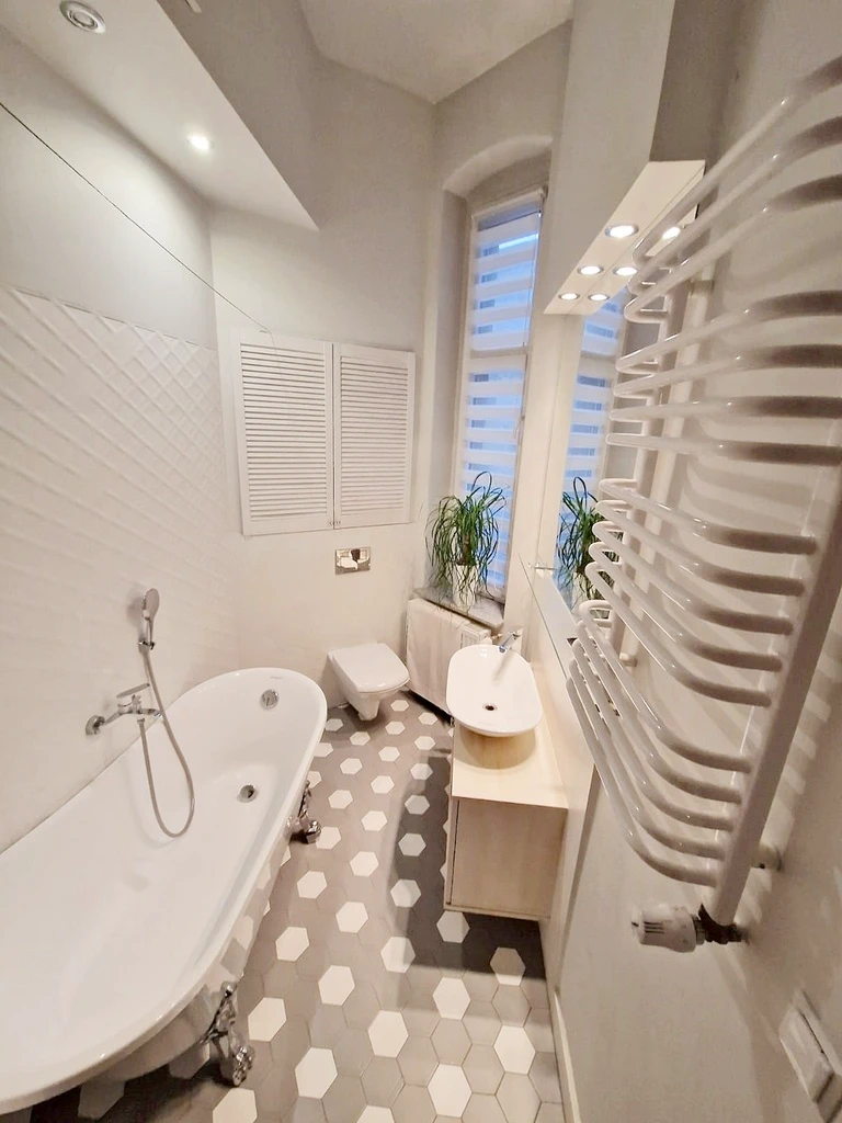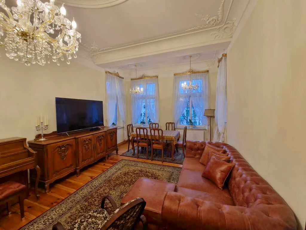 Diese außergewöhnliche Altbauwohnung befindet sich in einer ruhigen Seitenstraße im Stadtzentrum, in der Nähe der Bolesława-Śmiałego-Straße. Das Gebäude – ein repräsentatives Stadthaus aus der Jahrhundertwende – wurde aufwendig renoviert und bietet heute den Charme historischer Architektur kombiniert mit modernstem Wohnkomfort.