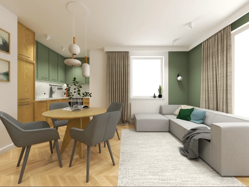 - Helles Wohnzimmer mit offener Küche – ca. 30 m²