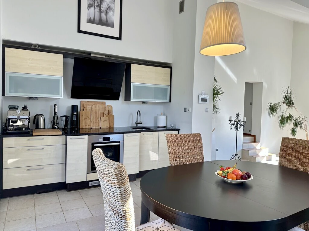 - Voll ausgestattete Küche (inkl. Kühlschrank, Geschirrspüler, Backofen)