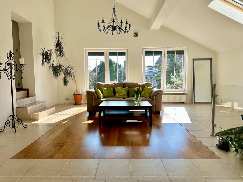 Dieses charmante Einfamilienhaus mit einer Gesamtfläche von ca. 330 m² (Nutzfläche ca. 246 m²) befindet sich in einer der gefragtesten Wohngegenden Szczecins – Warszewo. Das Haus liegt auf einem rechteckigen Grundstück von insgesamt 1.200 m² (davon 600 m² gepachtet mit Kaufoption) und bietet zahlreiche Nutzungsmöglichkeiten – ideal für große Familien, Mehrgenerationenhaushalte oder zur Verbindung von Wohnen und Arbeiten.