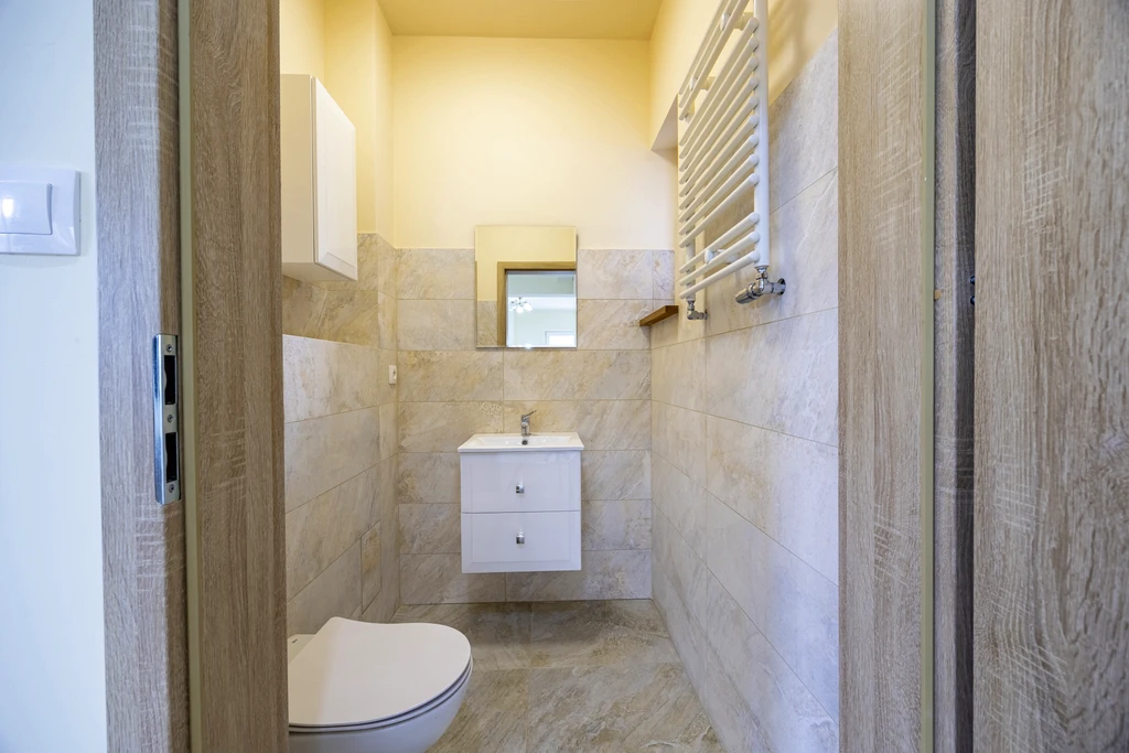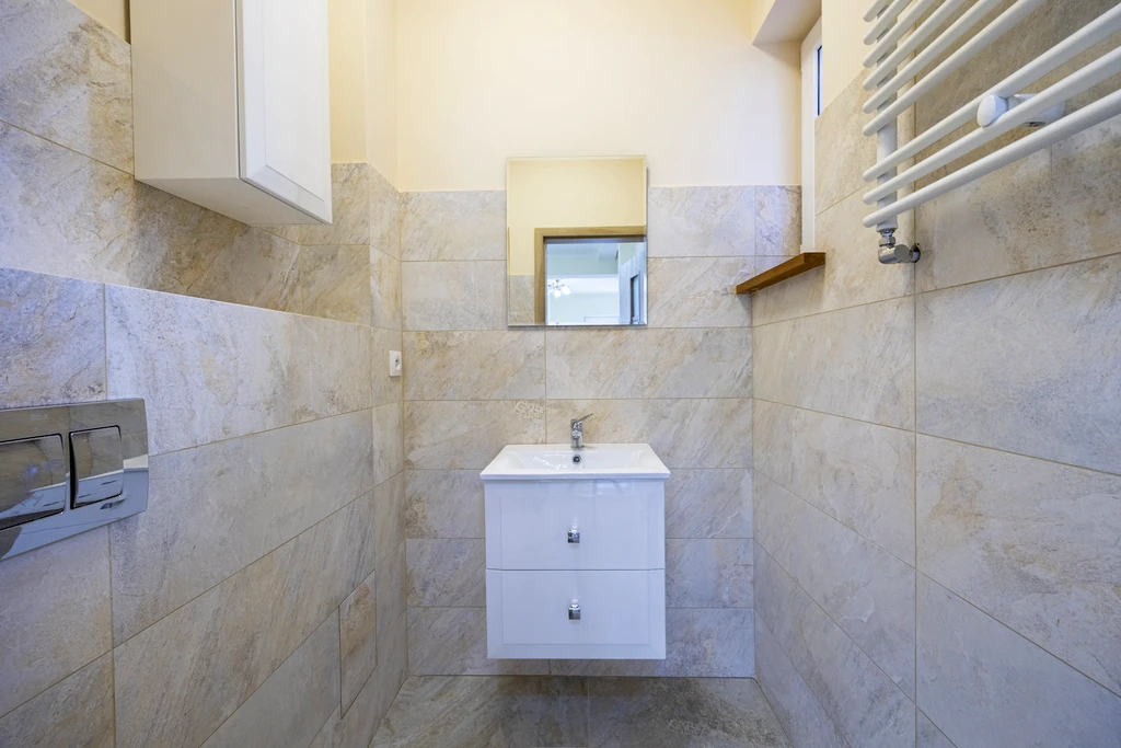 - Pierwsze zdjęcie w naszej galerii zostało lekko zmodyfikowane, aby pokazać, jak nieruchomość mogłaby wyglądać – na przykład po zmianie koloru ścian. Kolejne zdjęcia przedstawiają rzeczywisty stan nieruchomości.
