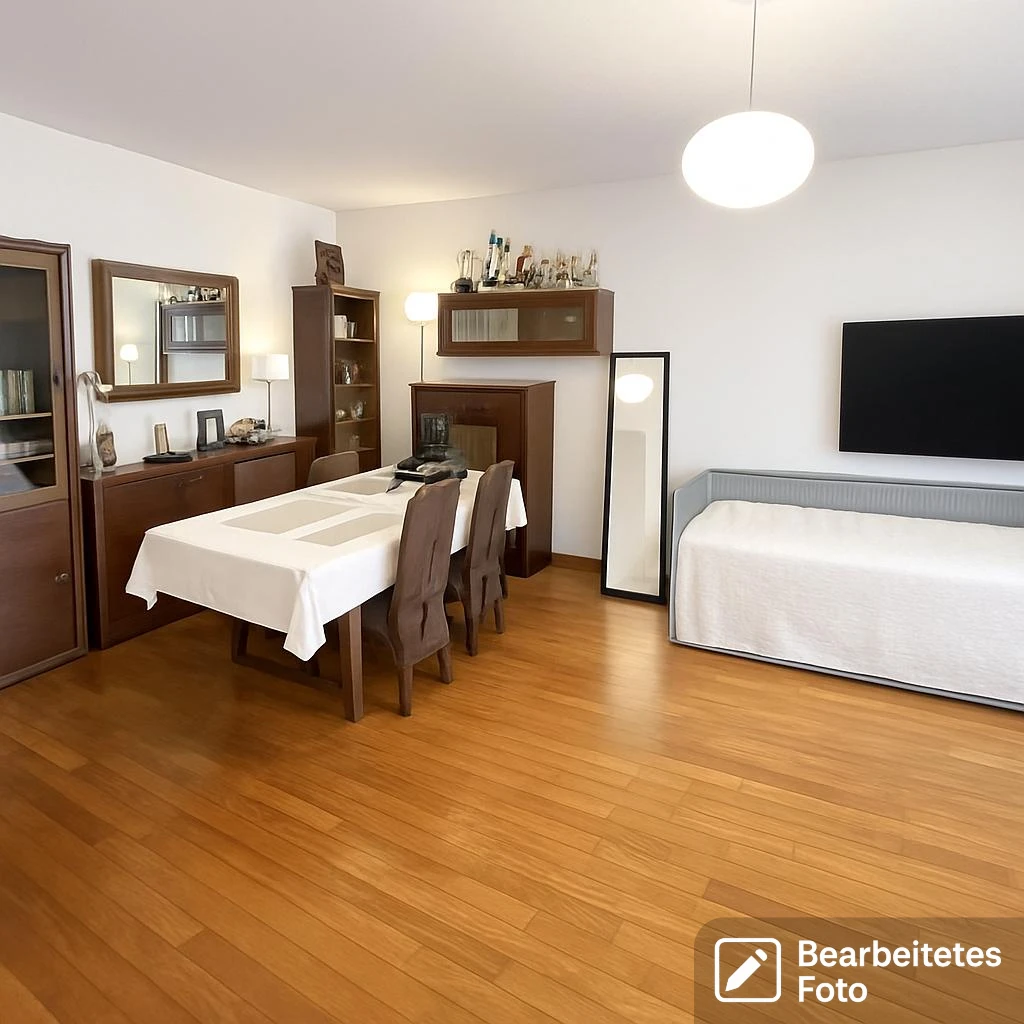 Die Wohnung befindet sich in einem ausgezeichneten Zustand. Auf den Böden liegt gepflegtes Laminat, die Wände sind glatt verputzt und in warmen, zeitlosen Farben gehalten – sofort bezugsfertig und ohne Renovierungsbedarf.