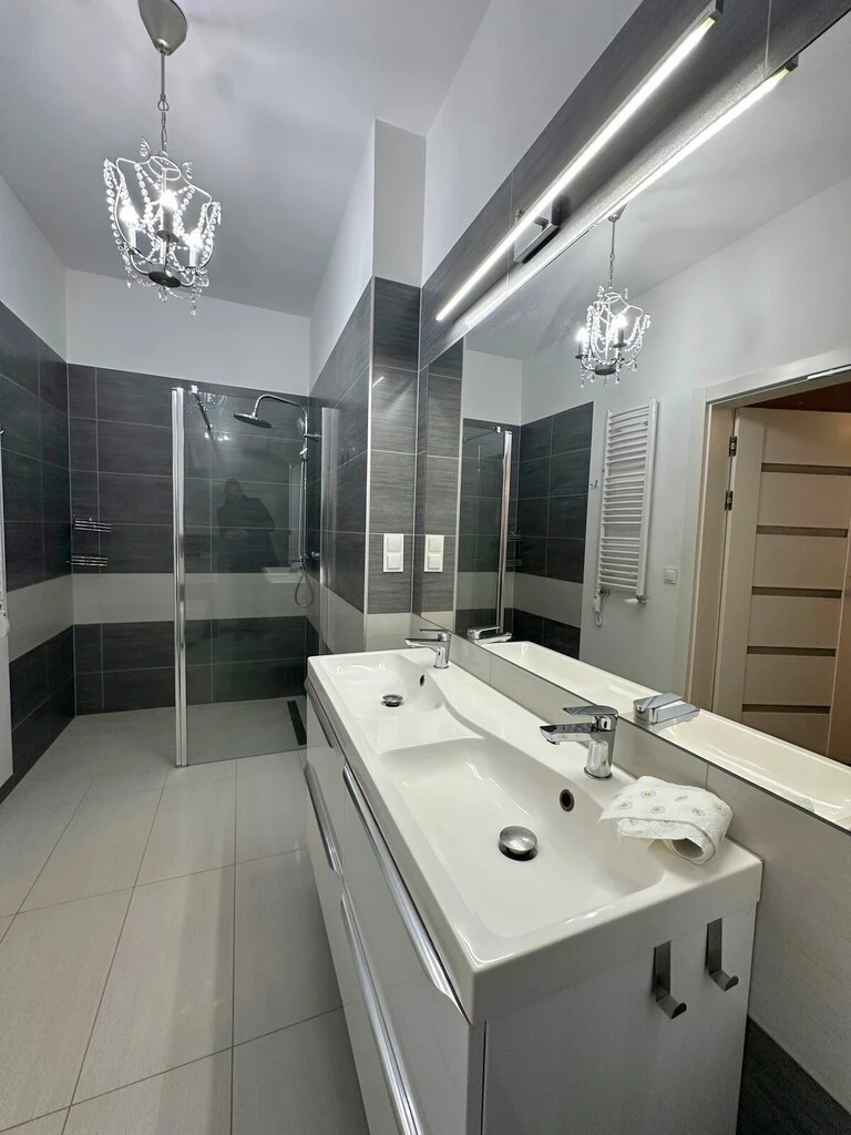 Dieses hochwertig ausgestattete Apartment überzeugt durch stilvolles Design, großzügige Raumaufteilung und eine exklusive Ausstattung. Die Kombination aus hellen Elementen, wie der eleganten weißen Einbauküche mit schwarzen Steinarbeitsplatten, hochwertigem Bodenbelag und einem modernen Badezimmer verleiht dem Zuhause ein einzigartiges Ambiente mit einem Hauch von Luxus.