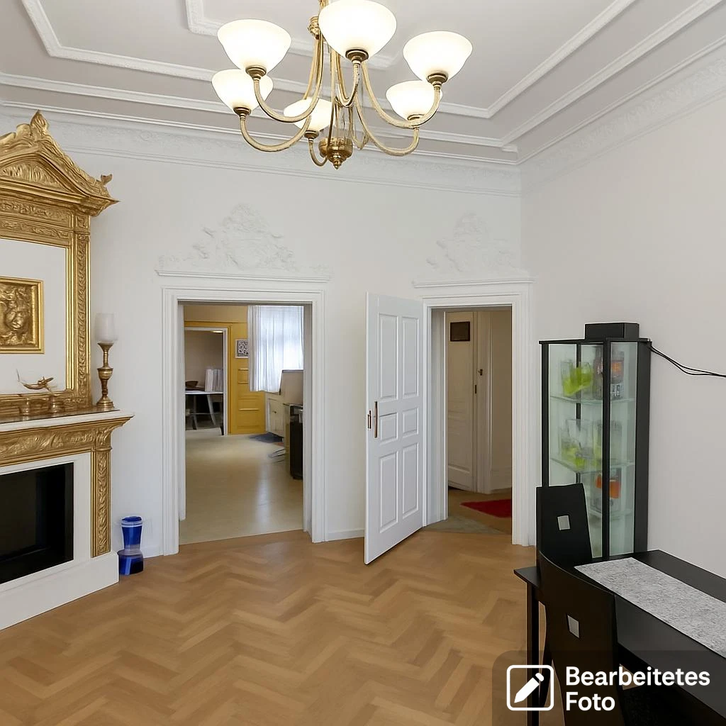 Die Wohnung besticht durch ihre hohen Räume und den besonderen Charme eines gepflegten Altbaus. Für Liebhaber historischer Architektur bietet sie originale Stuckverzierungen sowie einen stilvollen Kamin, der eine gemütliche Atmosphäre schafft.