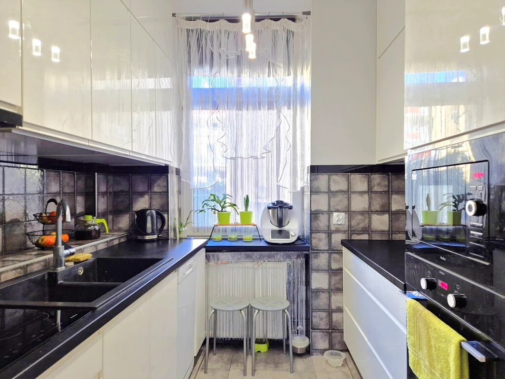 - Küche: Tageslichtküche mit neuen Einbaumöbeln und Ausstattung: Induktionskochfeld, Mikrowelle, Backofen, Geschirrspüler und Kühl-Gefrierkombination