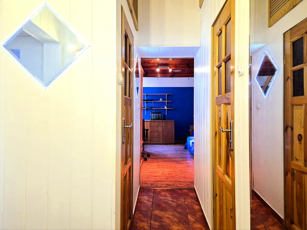 - Grundriss: Geräumiges Wohnzimmer, Schlafzimmer mit begehbarem Kleiderschrank, zwei weitere Zimmer (eines mit Schlafgalerie), heller Flur mit zusätzlichem Stauraum oberhalb der Treppe