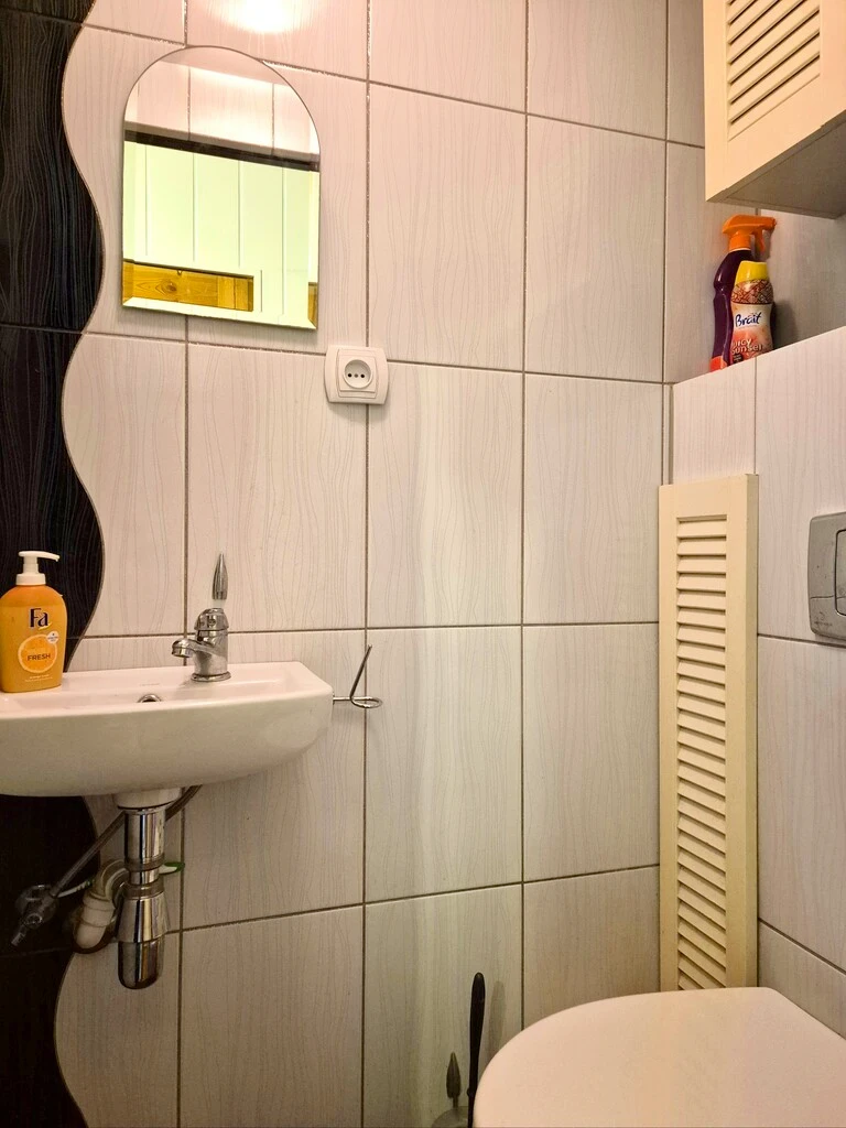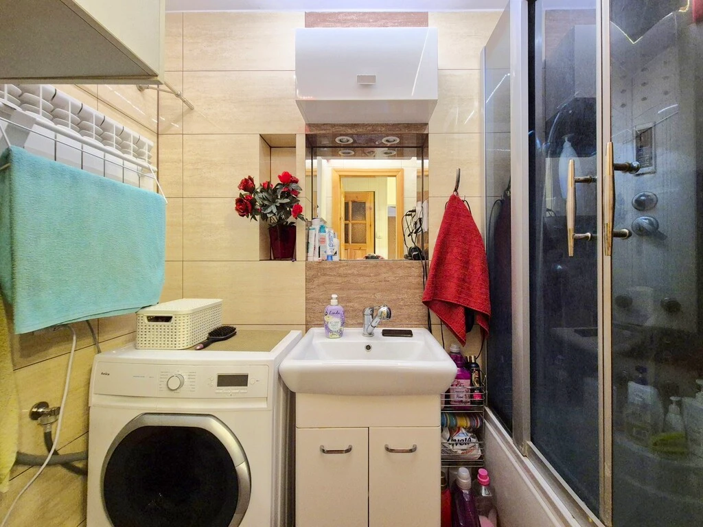 - Badezimmer & WC: Modernes Bad mit Dusche, Waschbecken und Waschmaschine sowie separates WC mit Waschbecken