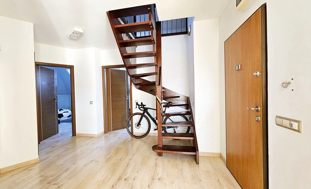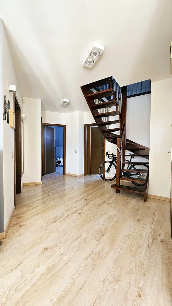 Erste Ebene (Wohnfläche ca. 78,5 m²): - Geräumiges Wohnzimmer mit Zugang zu einem großen Balkon – perfekter Ort für entspannte Stunden im Freien mit schönem Weitblick. - Offene, voll ausgestattete Küche mit funktionaler Einbauküche und Elektrogeräten. - Zwei helle Schlafzimmer – ideal für Familien mit Kindern. - Großzügiger Eingangsbereich mit viel Platz für Stauraum. - Separate, große Garderobe für Kleidung oder Haushaltsgeräte. - Tageslichtbad mit Fenster – komfortabel und praktisch.
