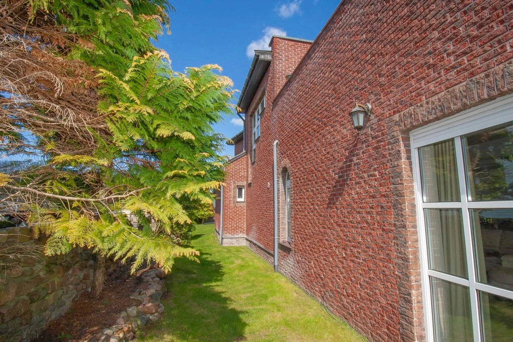 Das Grundstück ist aufwendig gestaltet – zahlreiche Bepflanzungen, dichte Hecken aus Thuja, Ziersträucher und ein massives Zaun aus Stein und Mauerwerk sorgen für ein hohes Maß an Privatsphäre. Im hinteren Bereich des Gartens befinden sich ein Pavillon sowie eine separate Grillzone.
