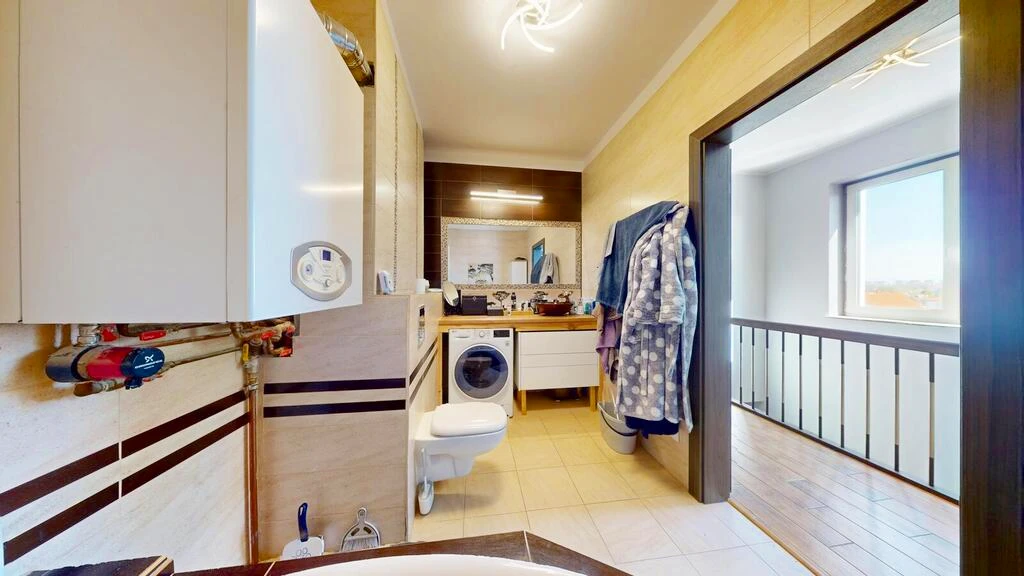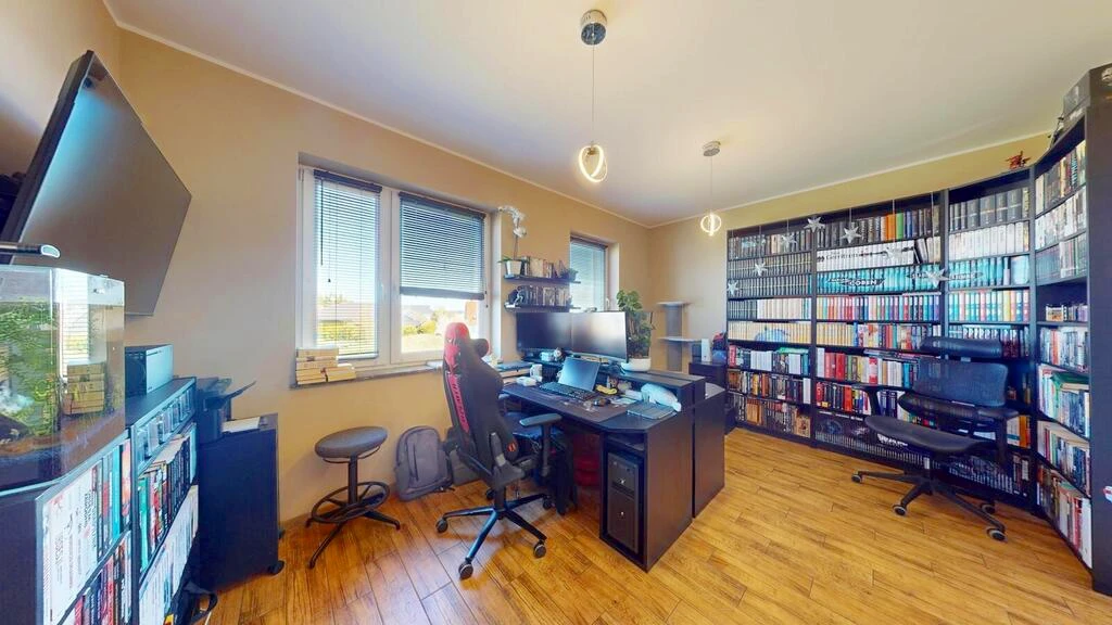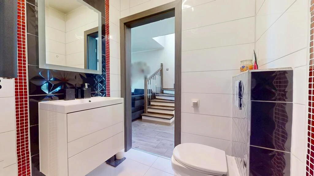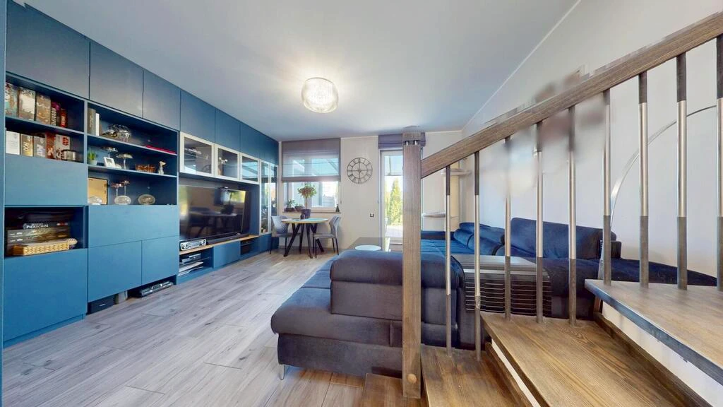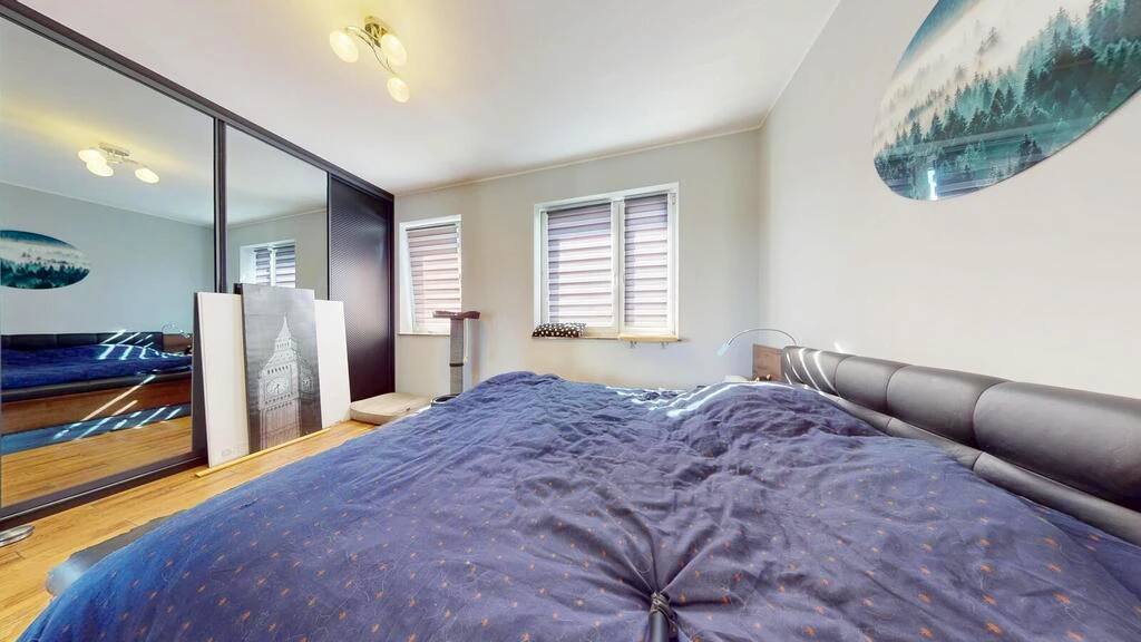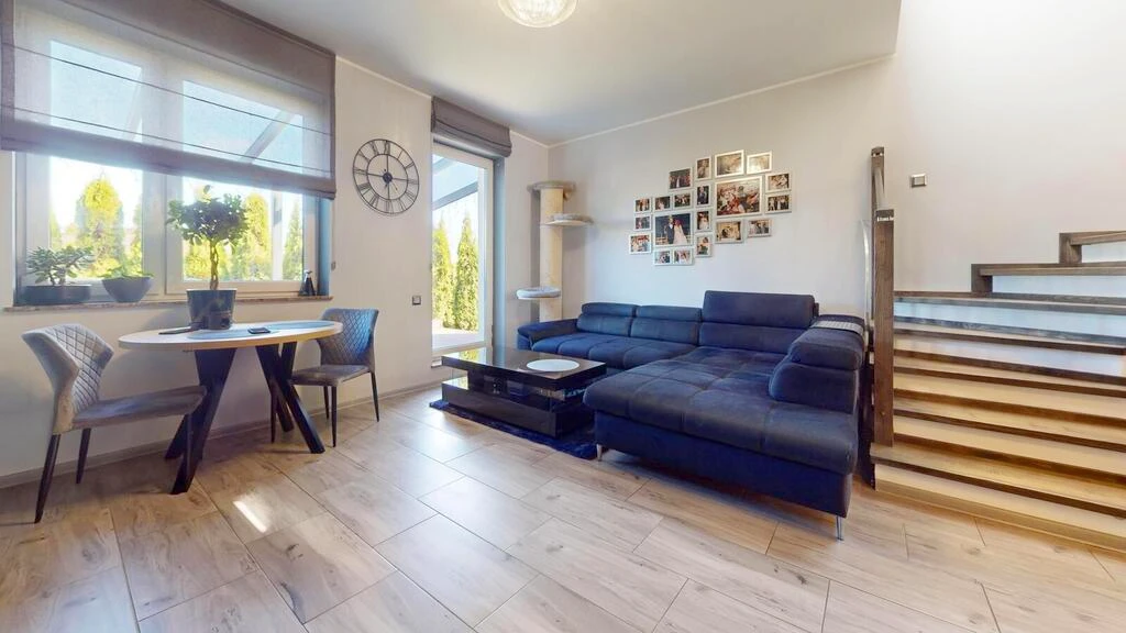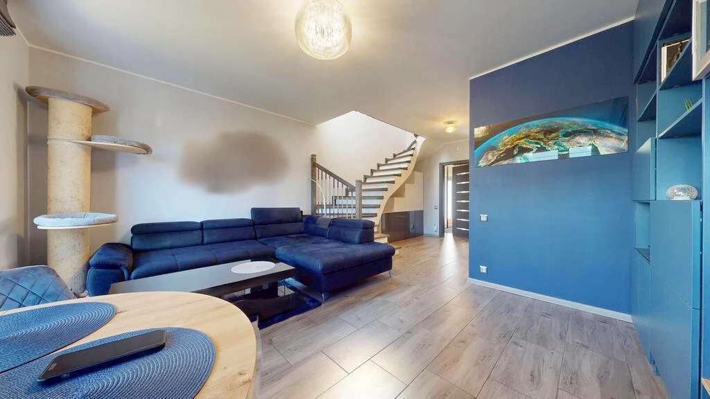 Dieses charmante Doppelhaus wurde 2017 erbaut und befindet sich in einer ruhigen Sackgasse einer geschlossenen Wohnanlage im Stadtteil Krzekowo – an der Grenze zwischen Szczecin und Mierzyn. Die Lage bietet eine ideale Kombination aus Ruhe und Nähe zur Stadt, mit guter Anbindung an das Zentrum sowohl mit öffentlichen Verkehrsmitteln als auch mit dem Auto.