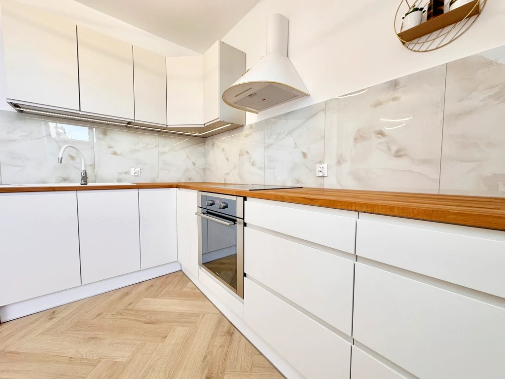 - Zeitgemäße Einbauküche mit neuer Arbeitsplatte