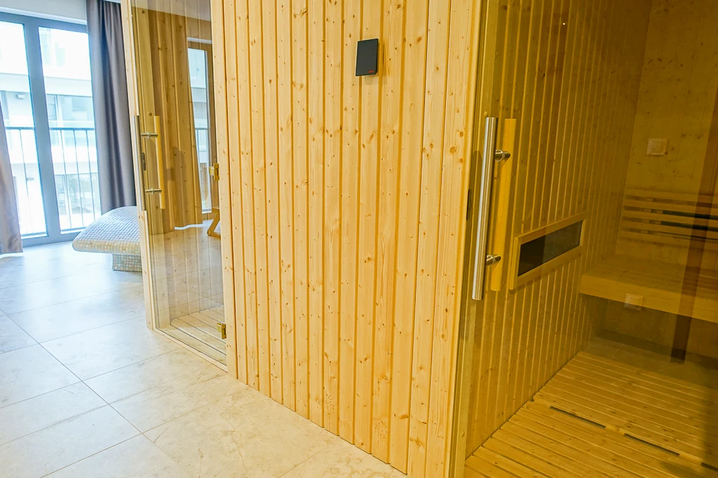 Vom Wohnzimmer, der Küche sowie beiden Schlafzimmern aus gelangen Sie direkt in den privaten Gartenbereich, der sich zur sonnigen Südostseite mit Blick auf die Wrzosowska-Bucht öffnet – ein idealer Ort für Entspannung und Privatsphäre.