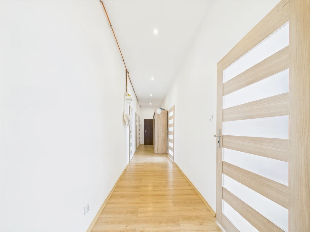 Der Grundriss der Wohnung ist durchdacht gestaltet und bietet eine praktische Raumaufteilung mit einem zentralen Flur, der einen bequemen Zugang zu allen Zimmern ermöglicht.