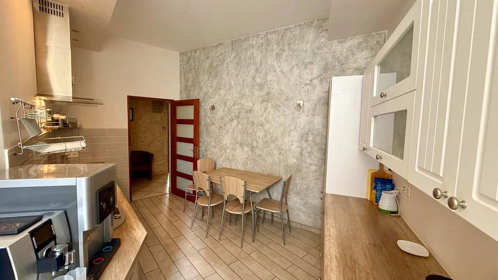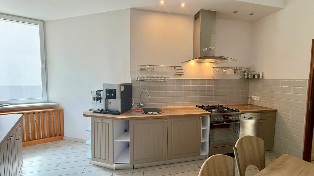 - Stilvolle Details: Glatte Wände, aufwendig gestaltete Stuckelemente an den Decken und ein funktionsfähiger Kamin in einem der Zimmer sorgen für ein elegantes Ambiente.