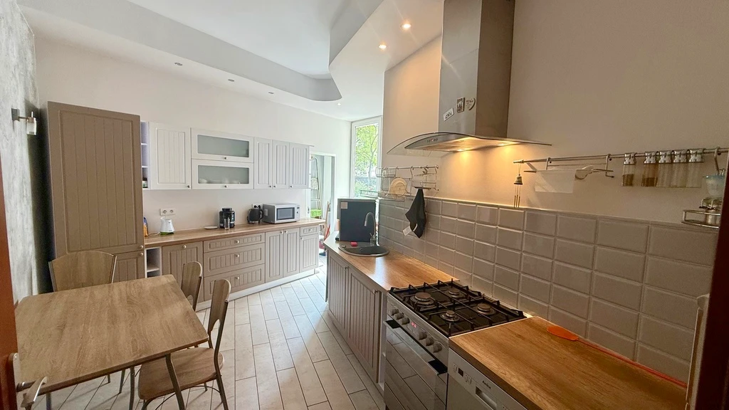 Diese charmante Altbauwohnung im Zentrum der Stadt bietet großzügige 89,60 m² Wohnfläche und verteilt sich auf vier helle Zimmer. Dank der soliden Ziegelbauweise und der modernisierten Ausstattung befindet sich die Immobilie in einem guten Zustand.