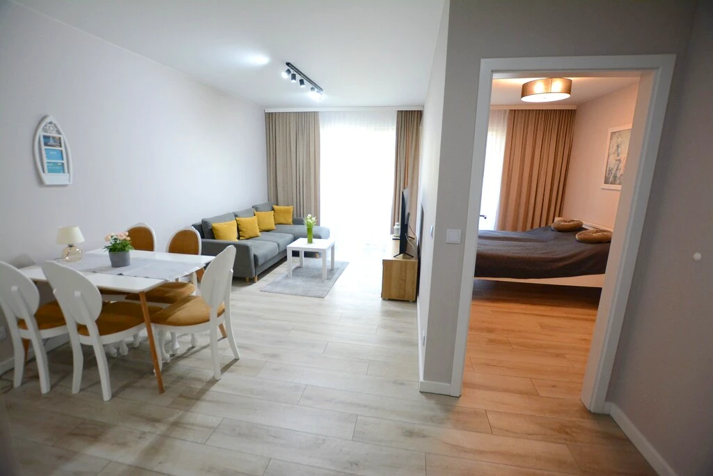 Willkommen in diesem stilvollen Apartment direkt an der Ostsee, gelegen in einer exklusiven, geschlossenen Wohnanlage im beliebten Badeort Rewal. Diese einzigartige Immobilie besticht durch ihre Lage in erster Meereslinie – nur ca. 30 Meter vom Strand entfernt – in einer der saubersten Regionen der polnischen Ostseeküste.