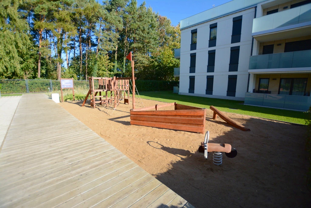 - Sichere Wohnanlage: Komplett umzäunt und videoüberwacht, mit Rezeption und barrierefreiem Zugang. Zusätzlich bietet die Anlage einen kleinen Spielplatz für Kinder.