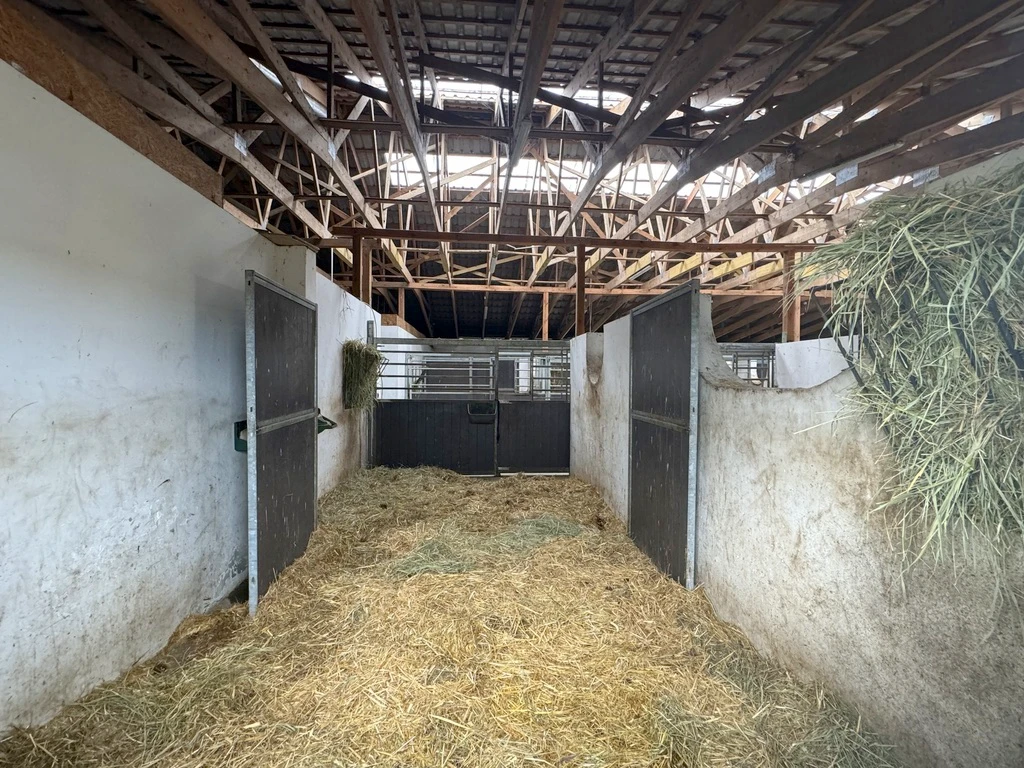Stallausstattung: - 9 klassische Pferdeboxen (leicht demontierbar) - 2 große Boxen à ca. 30 m² - 2 Waschplätze für Pferde (mit Warm- und Kaltwasser) - Lagerflächen (ca. 60 m²) - Untersuchungsraum mit Fixierbox - 9 englische Außenboxen mit separatem Zugang und Überwachungssystem - Sattelkammer, Badezimmer, Untersuchungsraum – alle beheizt, mit Warm-/Kaltwasseranschluss