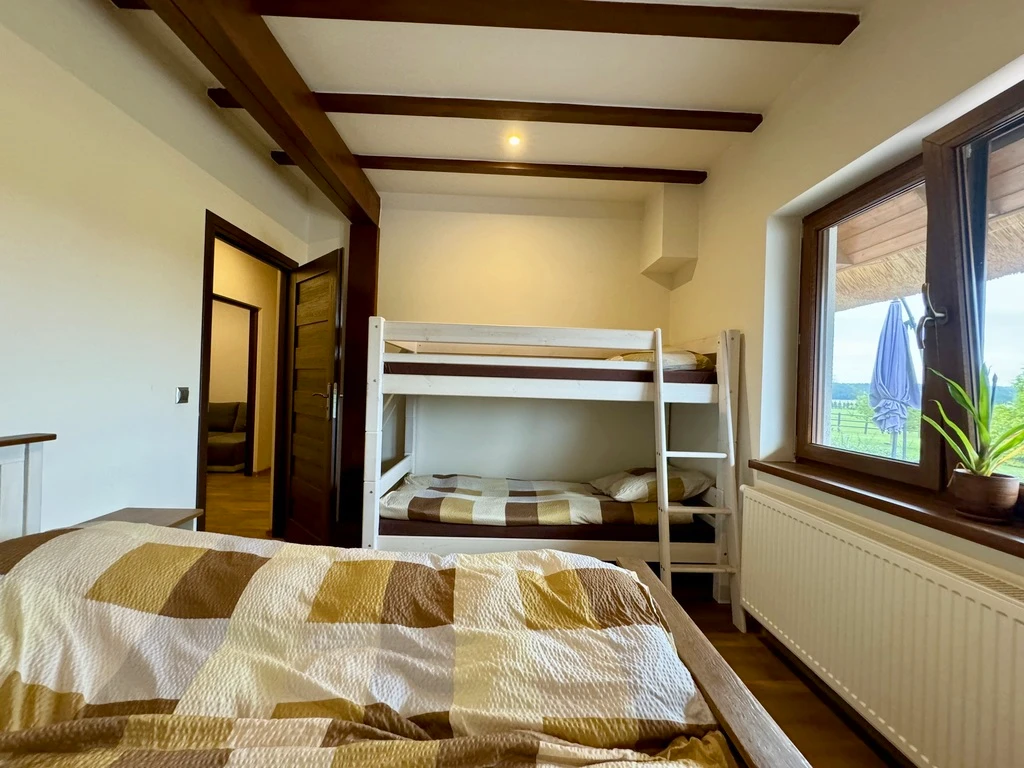 Zusätzliche Ausstattung: - Separates Apartment innerhalb des Gebäudes (83 m²) mit: - Wohnzimmer mit Küche - 2 Schlafzimmern - Badezimmer - Flur - Beheizt durch Fußbodenheizung (Wärmepumpe) - Gepflasterte Terrasse im Westen - Überdachte Halle mit knapp 100 m² Fläche - Photovoltaikanlage auf dem Dach mit 24 kW Leistung - Umzäuntes Grundstück mit Videoüberwachung aller Hauptbereiche